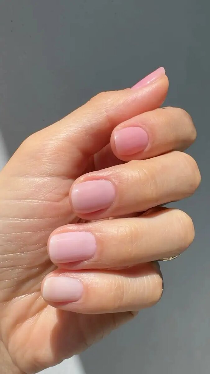Еще один тренд «чистых ногтей», появившийся в этом сезоне, — детский маникюр. В их основе лежит очень естественный розовый слой, который привлекает внимание своим блеском.