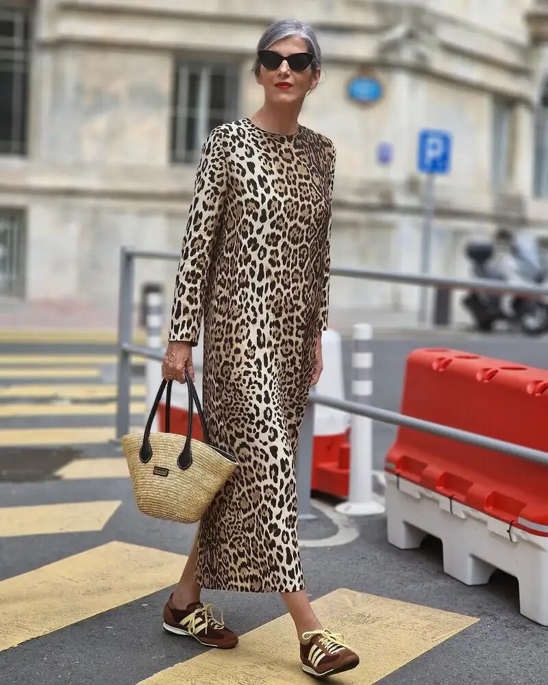 Для повседневного образа это идеальное решение, которое завоевывает все больше поклонников. Вы можете выбрать любой стиль платья и кроссовок, от самых простых до тех, которые следуют тенденциям, таким как анималистичный принт, как показывает нам Кармен Гимено.