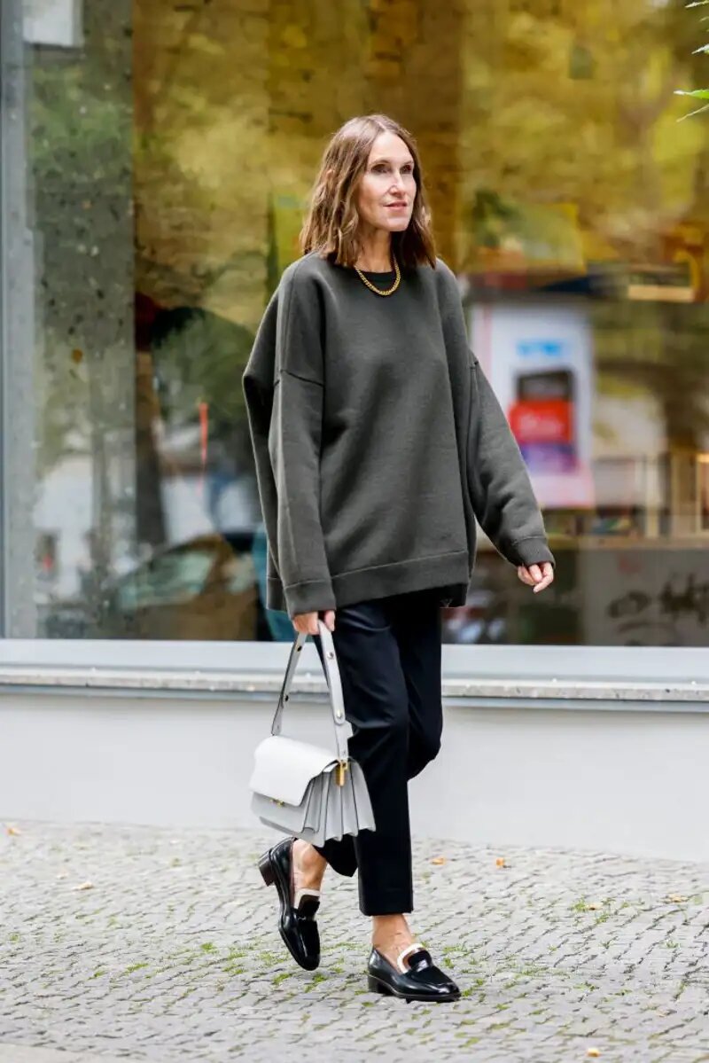 В довершение всего, широкие брюки или юбки-миди — надежный вариант, идеально подходящий к классической обуви, такой как ботинки или лоферы.