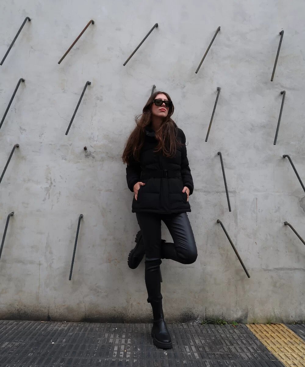 Полностью черный образ — классика для холодных дней: кто не может представить себе красивый пуховик зимой в Нью-Йорке?