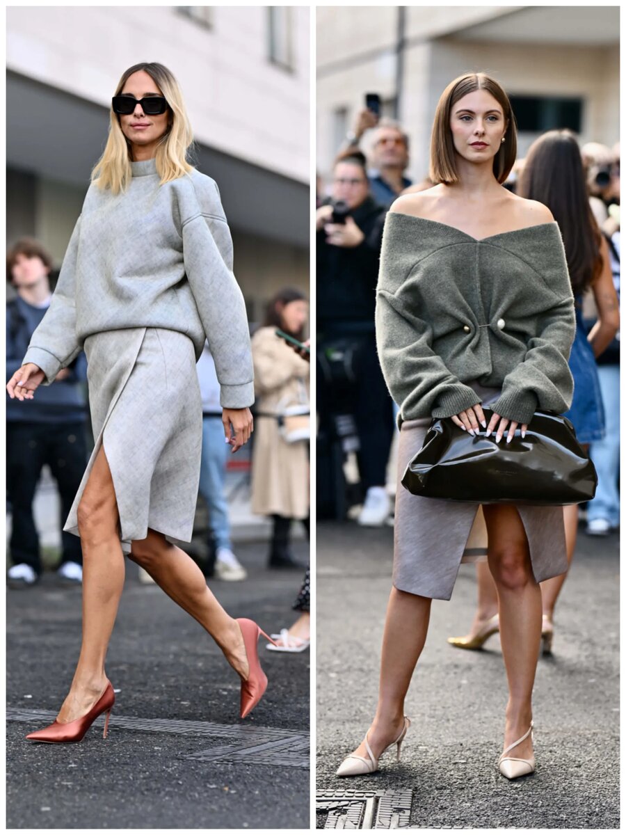 Поэтому в этом сезоне я решила немного повеселиться. Пересматриваю фотографии уличного стиля из Милана и Парижа в сентябре этого года. Меня всегда забавляет, как можно просматривать все фотографии, а потом не замечать трендов до тех пор, пока не пройдет несколько месяцев. Есть тренды, которые сразу бросаются в глаза, но есть и более незаметные. Например, в этом сезоне трикотажные мини-юбки носят поверх длинных рубашек. Раньше я этого не замечала.