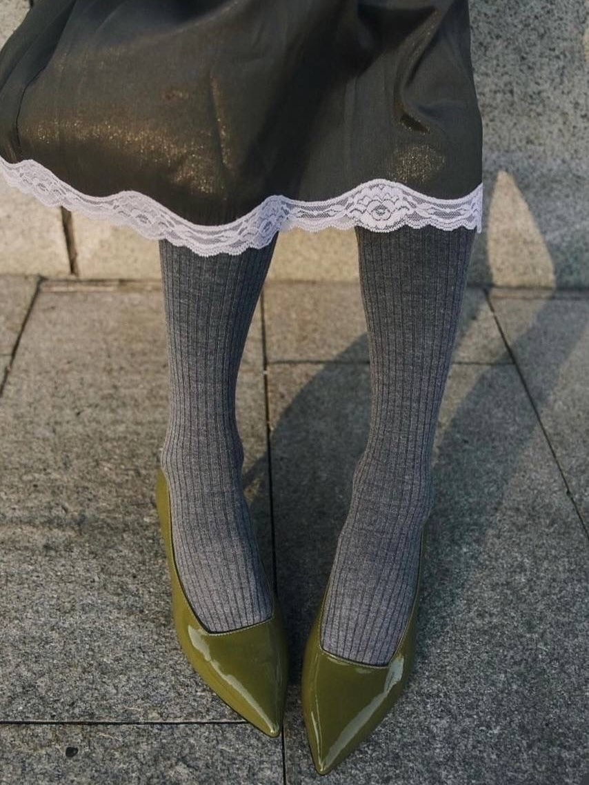 - За эстетику уюта (Comfortcore). Зумеры первыми громко заявили: удобство может быть стильным. Они сделали носки и колготки полноценным аксессуаром, а не просто необходимостью. Носки теперь могут быть ярким акцентом, а колготки — ключевой деталью образа.