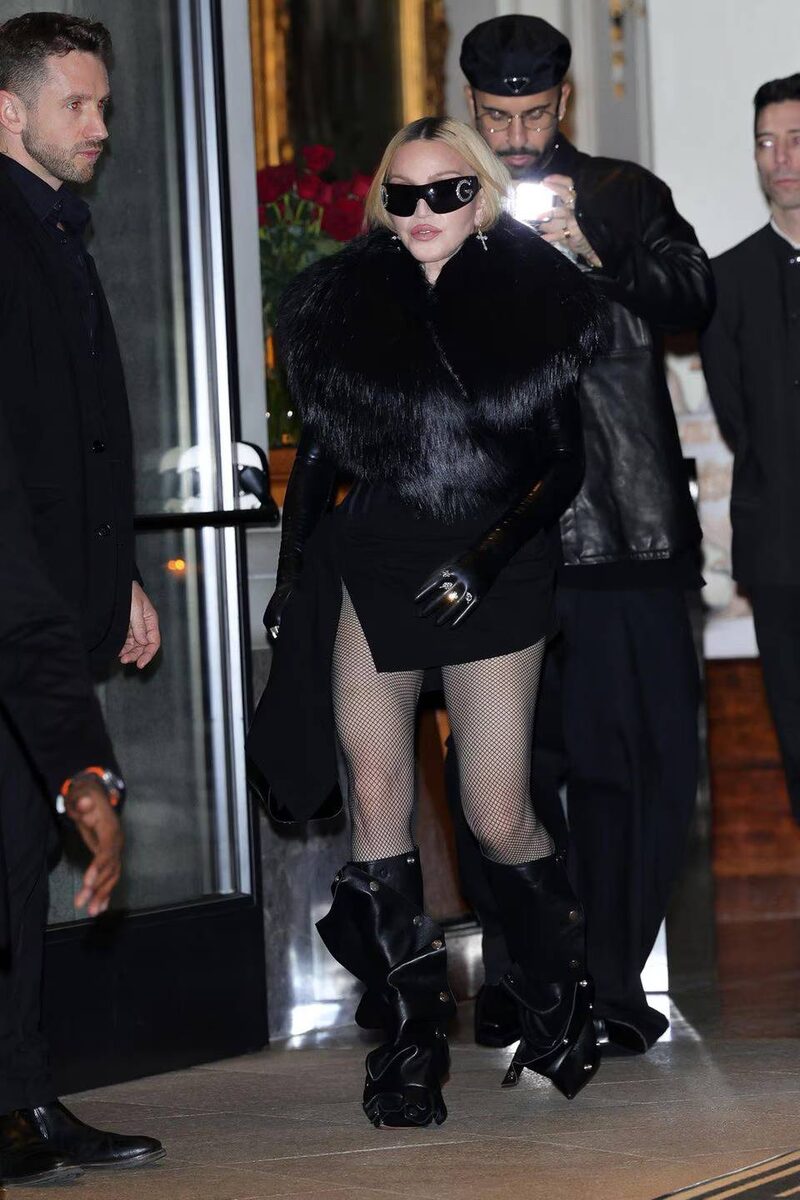 В своих более чем привлекающих внимание кожаных сапогах Мадонна снова стала магнитом для папарацци в своем сексуальном полностью черном наряде, когда она вышла из своего отеля в Милане в ноябре 2023 года.