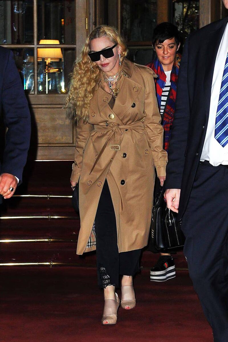 В тренче Burberry и черных брюках Мадонна выглядит почти как обычно во время своего визита в Париж в сентябре 2018 года.