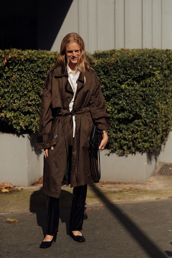 Отличной альтернативой классическому бежевому тренчу станет тренч в оттенке шоколадного коричневого цвета.