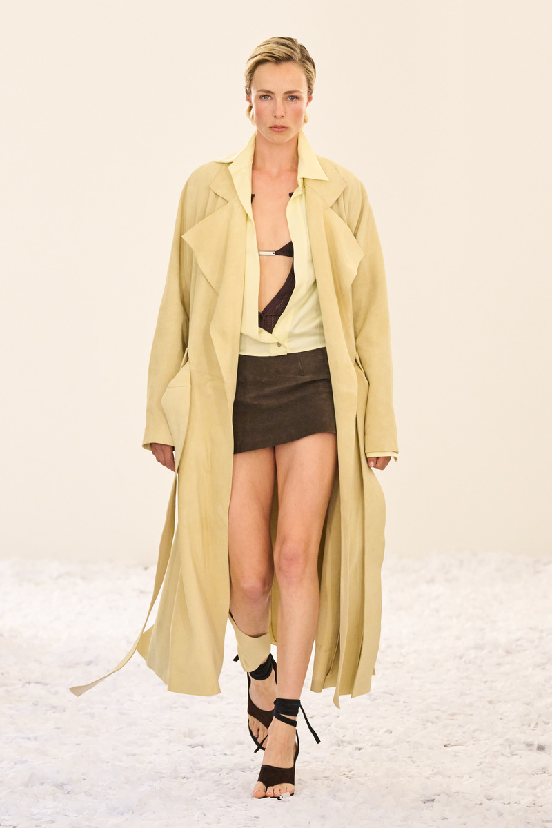 <Благодаря своему тону он легко сочетается практически с любым другим цветом — будь то другой пастельный или контрастный цвет, зеленый, красный или синий. Но почему бы не попробовать полный образ в этом цвете? Наряд, составленный в одном тоне, всегда выглядит элегантно и гармонично — он придает единому образу четкость и изысканность, даже если силуэт максимально прост. В случае бежево-желтого такой образ работает как глоток свежего воздуха после дождя — легкий, но выразительный.