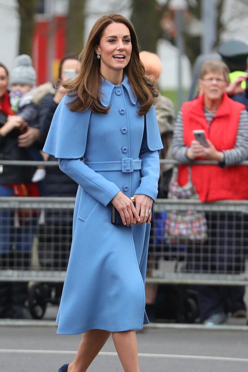 Обширная коллекция пальто Кейт Миддлтон включает в себя множество уникальных моделей, таких как это небесно-голубое пальто с накидкой.