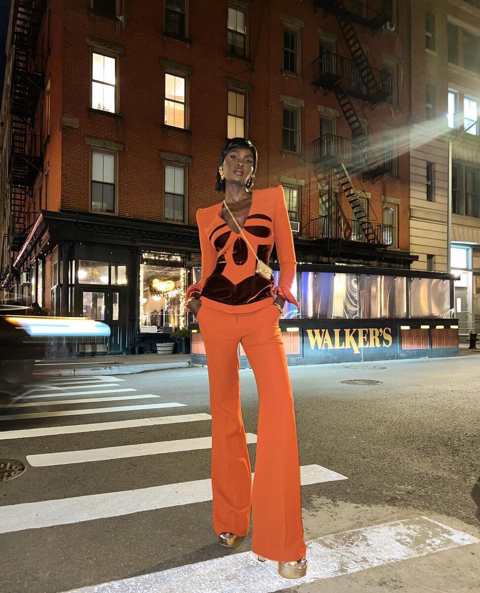 Сочетание мягкой фактуры бархата и строгого кроя костюма делает образ таким динамичным. Ансамбль, который, помимо роскоши, излучает уверенность в себе.