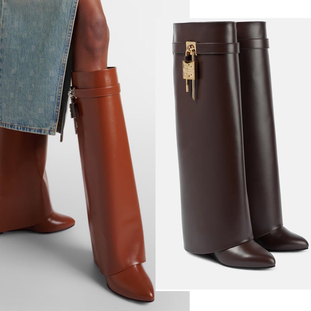 В сезоне осень-зима 2024-2025 сапоги с широким голенищем продолжают возглавлять хит-парады. Эталонная модель — Shark Lock от Givenchy, но в магазинах вы наверняка видели множество сапог, вдохновленных этой моделью.