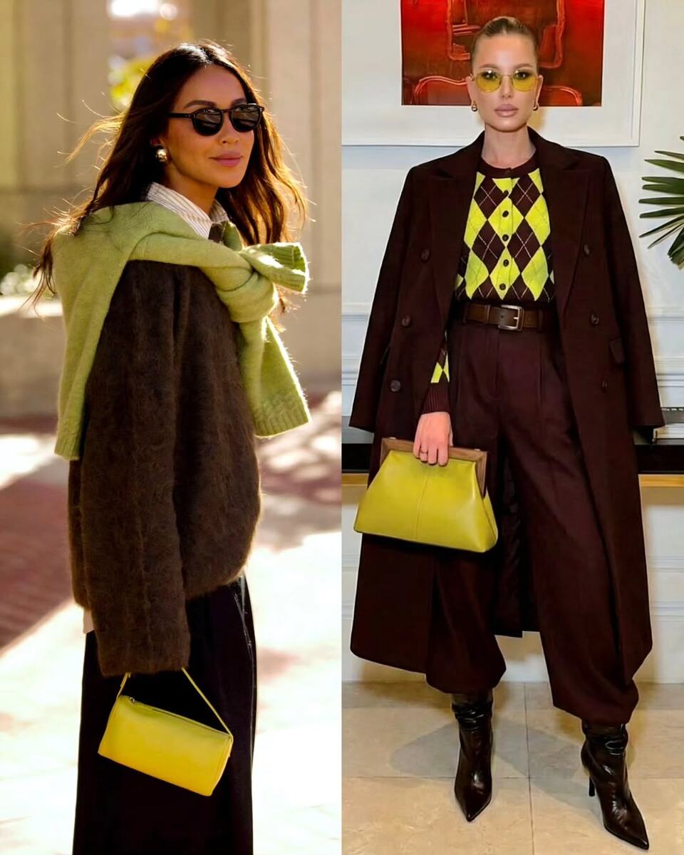 - С коричневым: Pantone рекомендует этот дуэт как самый стильный для оттенка «Акация».