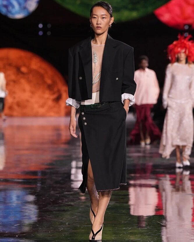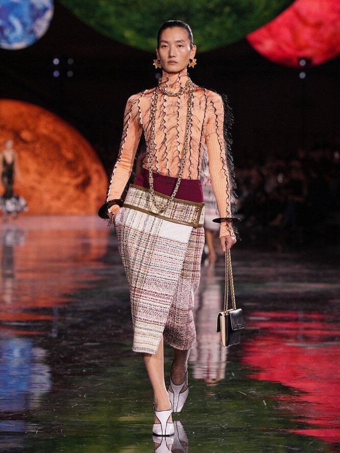 Место было привычным — недавно отреставрированный Гран-Пале в Париже регулярно принимает модные показы и знаменитых гостей. Однако мало кто ожидал увидеть гигантские инсталляции планет, свисающие со стеклянного потолка на показе Chanel. И коллекция нового креативного директора Матье Бле, безусловно, вызвала большой интерес у многих.