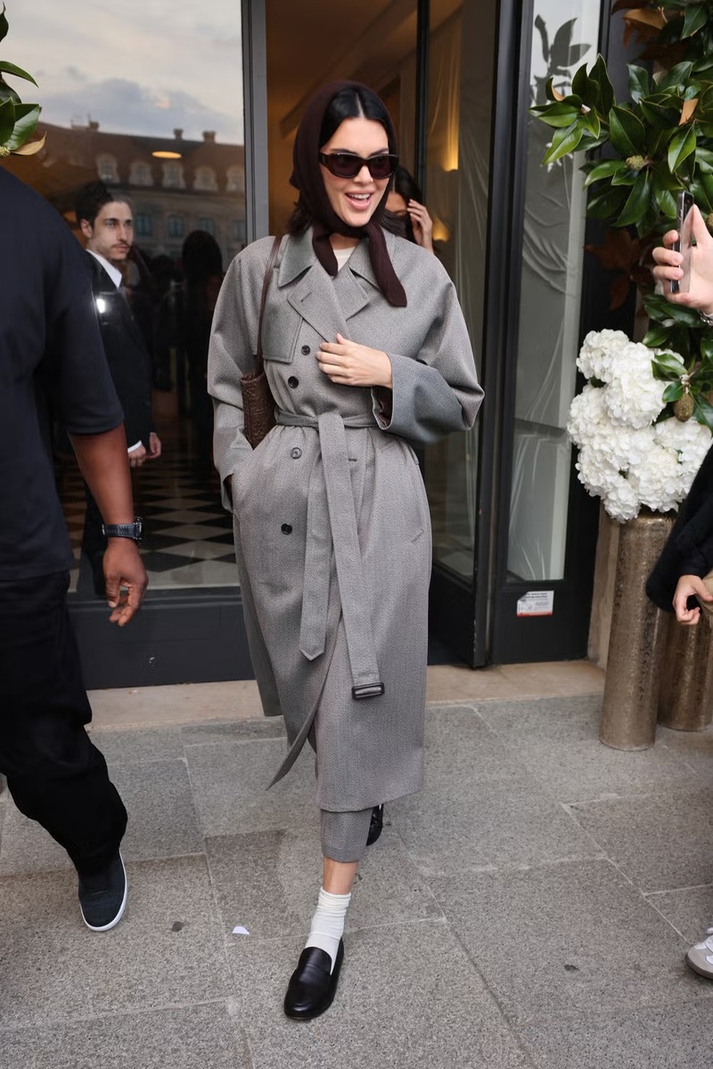 На этот раз модель была сфотографирована фотографами у магазина Schiaparelli. Кендалл объединила два самых востребованных цвета осени 2025 года — коричневый и серый — и создала интересное сочетание.