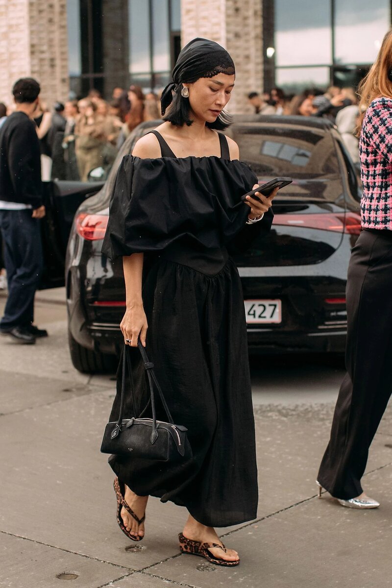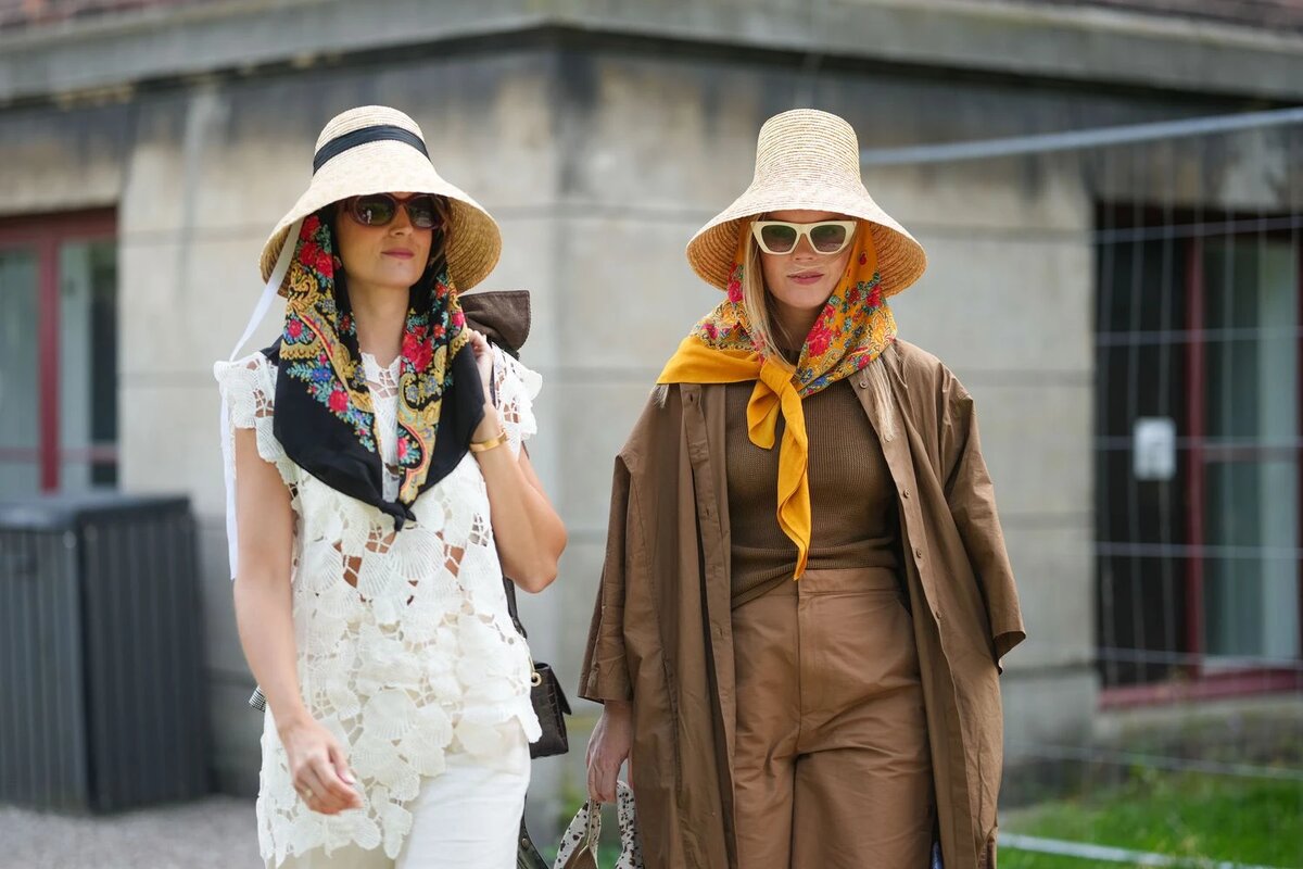 На Неделе моды в Копенгагене модницы делают ставку на платки, завязанные на голове.