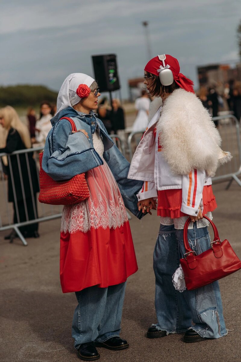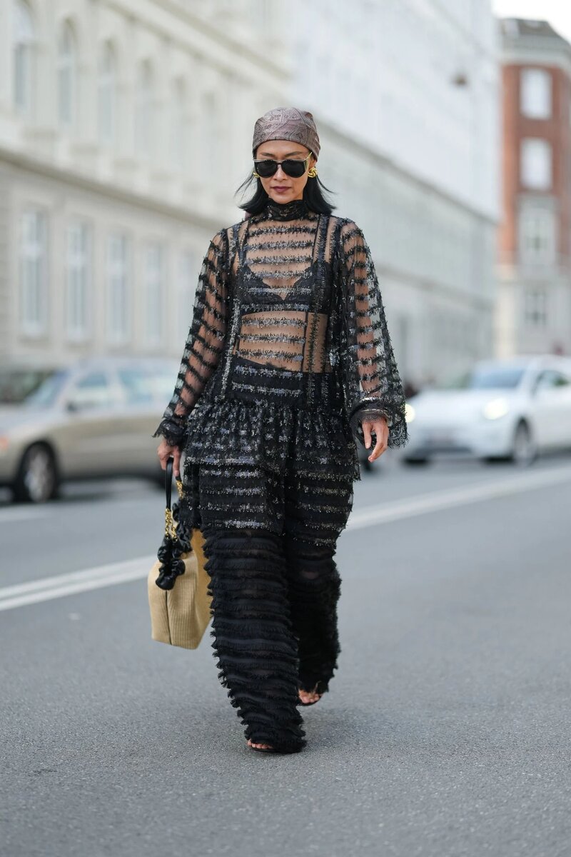 В Копенгагене модницы носят шелковые платки, следуя по стопам таких икон моды, как Кэрри Брэдшоу, которая в сериалах «Секс в большом городе» и «И просто так…» создавала разнообразные стильные образы с платками, повязанными вокруг головы на манер бабушки или на шее, как самодельный галстук.