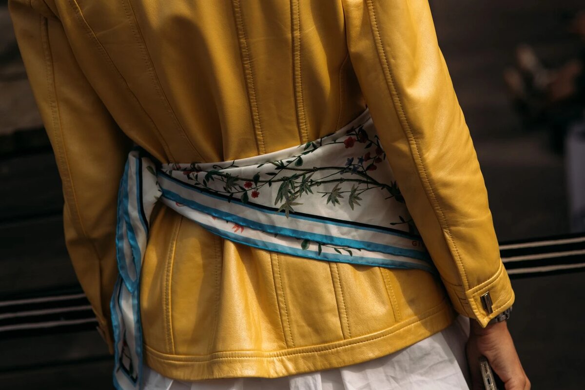 На Неделе моды в Копенгагене модницы отдают предпочтение платкам, повязанным на талии.