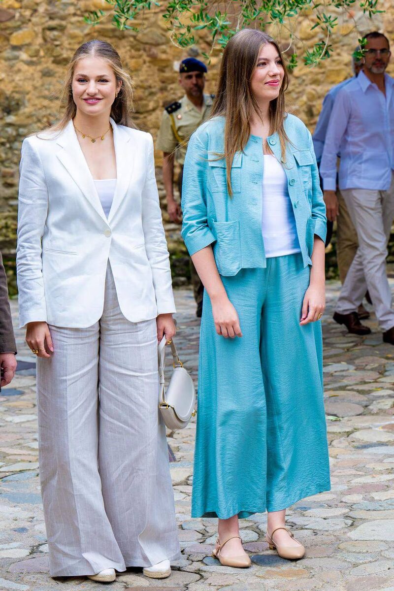На церемонии вручения премии «Принцесса Жироны» испанские принцессы Леонор и София были одеты в разные, но в то же время похожие, костюмы-двойки. Льняные брюки наследницы престола и синие брюки её сестры были свободного кроя. Леонор выбрала классический белый пиджак с лацканами, а София — жакет с круглым вырезом, эффектными карманами и пуговицами. Однако скрытый секрет этого образа — доступная цена.