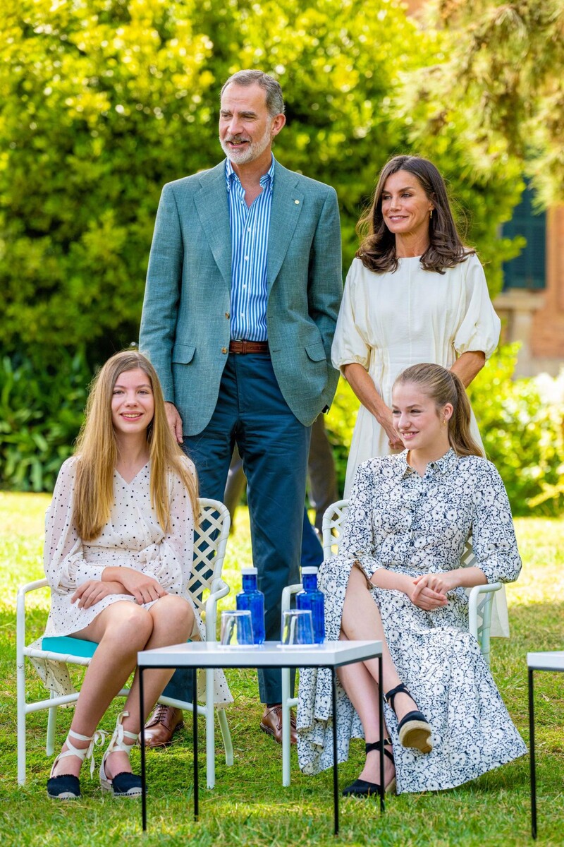 Испанская королевская семья отдыхает на Майорке. Их фотографируют выходящими из ресторана в элегантных летних нарядах. Особенно впечатляют образ короля и красивое и необычное платье принцессы Леонор. С густой бородой, которую он, по-видимому, отрастил во время отпуска, Фелипе вполне мог бы стать голливудской знаменитостью. Платье Леонор действительно притягивает взгляды благодаря оборкам на левом боку и слегка прозрачной ткани.