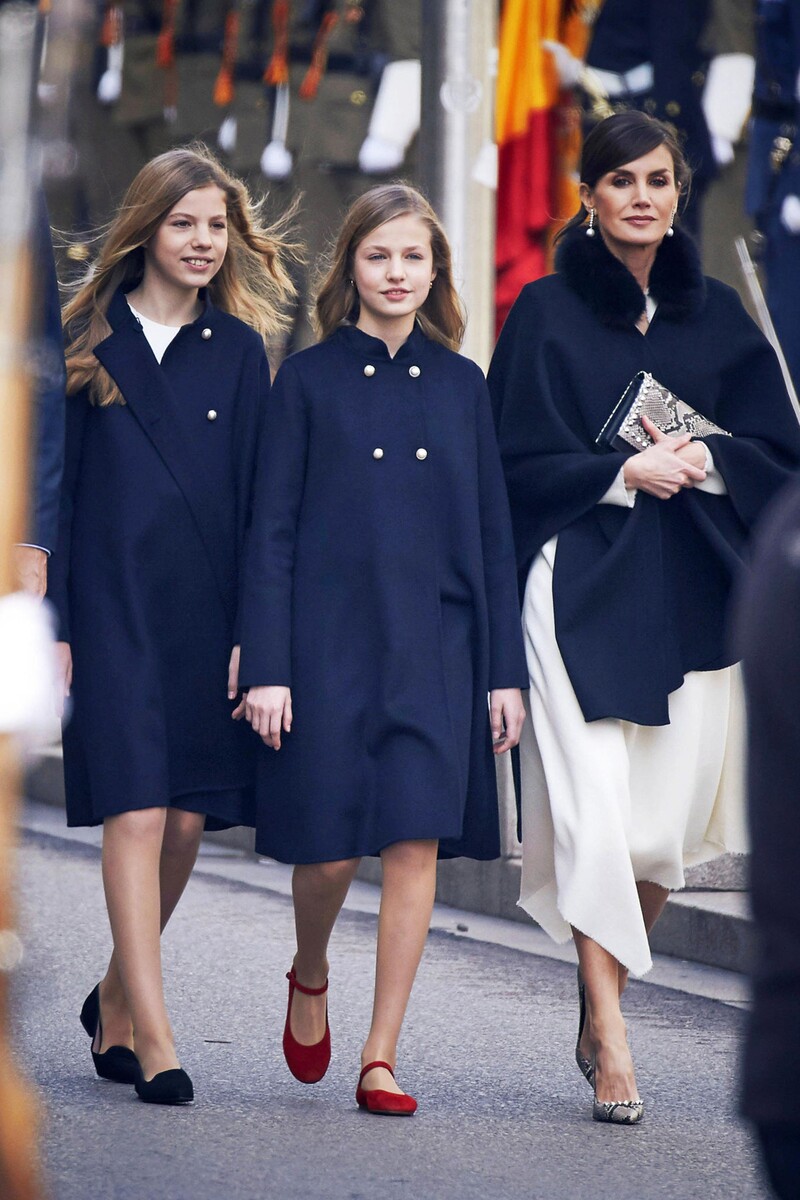 Королева Летиция и её дочери София и Леонор были особенно прекрасны на открытии испанского парламента в Мадриде в начале февраля. Образы королевских красавиц в пальто создала звёздный дизайнер Каролина Эррера.