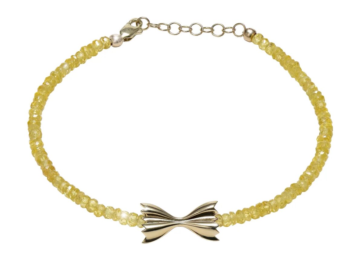 В центре ожерелья Roxanne First — кусочек макарон в форме банта, метко названный в честь коллекции Buon Appetito, что в переводе с итальянского означает «Приятного аппетита».