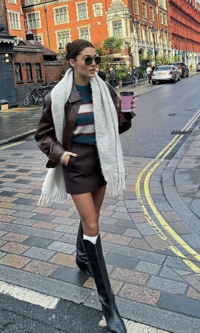 Кожаные косухи: Привносят нотку бунтарства и идеально контрастируют с романтичными платьями или юбками.