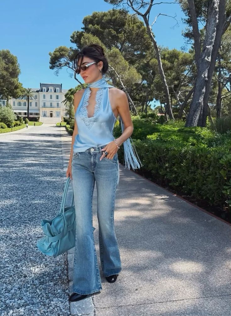 - Джинсы-клеш: Идеально удлиняют ноги, создают ретро-силуэт и добавляют образу плавности.