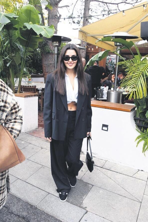 Почему это работает: Это классический образ, но Ханде делает его «своим» за счет идеального кроя, качественных материалов и отсутствия лишних деталей. Сумка-портфель завершает деловой стиль.