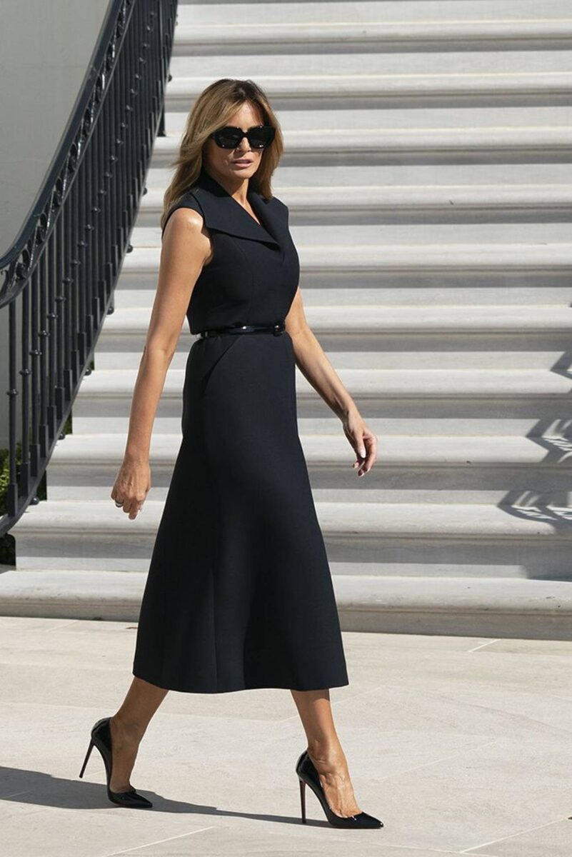 Трудно сказать, нравится ли Мелании Трамп сопровождать Дональда Трампа в его политических поездках. Если цветовая палитра говорит об эмоциях, то, скорее всего, нет. 22 октября 2020 года Мелания и Дональд покинули Белый дом, чтобы отправиться в Нэшвилл, штат Теннесси, на финальные дебаты с кандидатом от Демократической партии Джо Байденом. Мелания, в свою очередь, не одевалась для победы. Если бы она одевалась, мы бы ожидали увидеть её в красном, как у республиканцев. Вместо этого она надела чёрное платье без рукавов, подпоясанное чёрным поясом, и дополнила образ чёрными туфлями на каблуках. Это был самый безвкусный монохромный наряд.