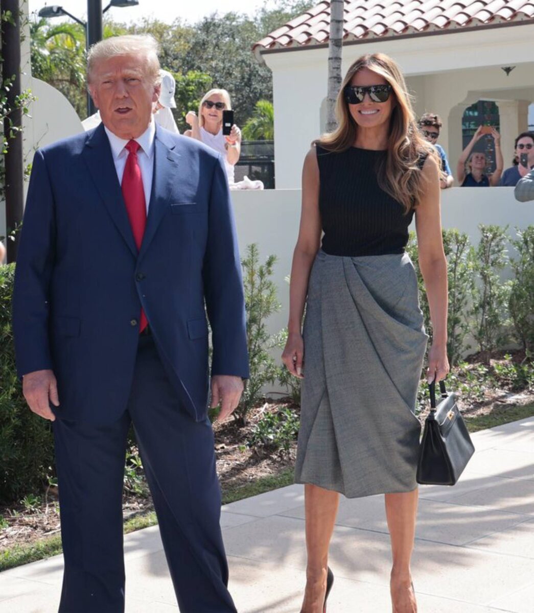 Для Мелании Трамп голосование 5 ноября 2024 года в Палм-Бич, штат Флорида, было чёрно-белым. Для этого мероприятия она выбрала чёрное жаккардовое платье-рубашку от Dior, пару лакированных чёрных туфель на каблуке и свои фирменные чёрные солнцезащитные очки. Мелания уже носила это платье несколько месяцев назад, так что это был её новый наряд. Своими нарядами Мелания ясно заявляла о себе: если её муж будет переизбран, Мелания станет классической первой леди. Её традиционный, невыразительный наряд был попыткой отвлечь внимание от себя.