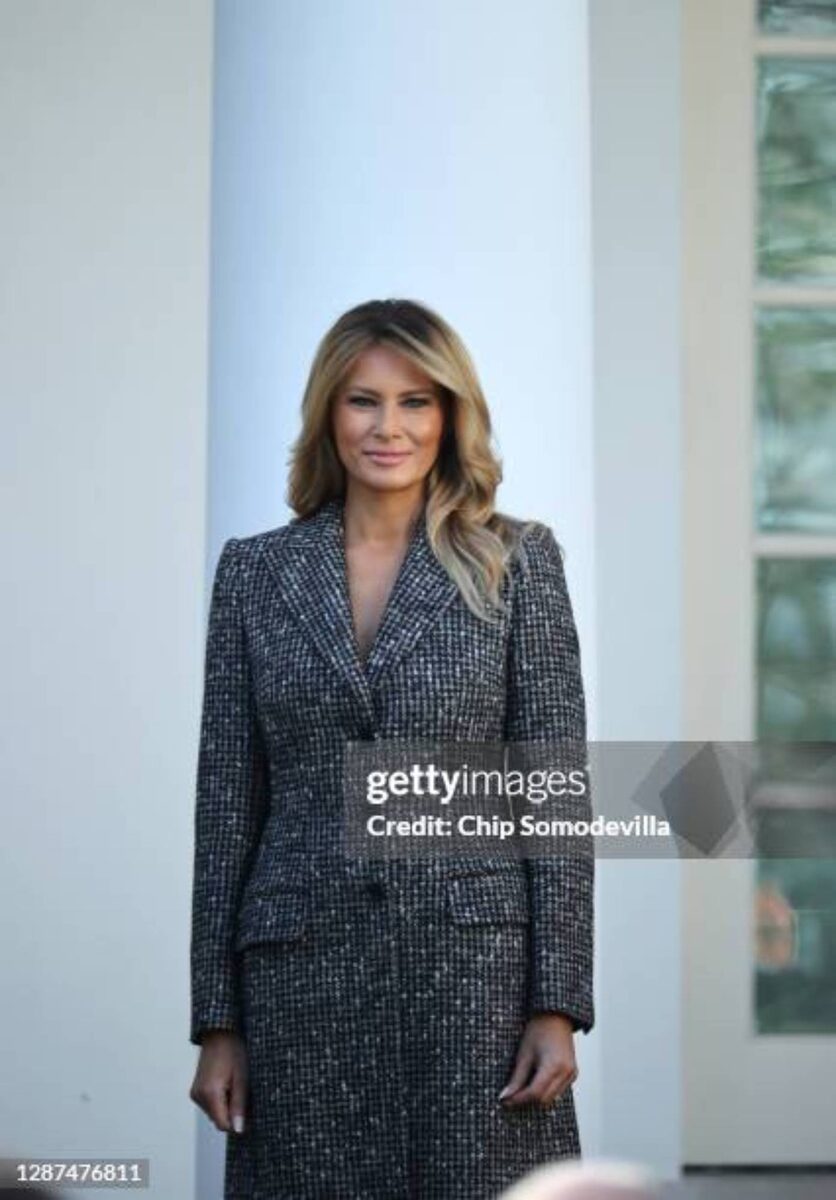 Возможно, Мелания Трамп не хотела затмевать индейку, но на ежегодной церемонии помилования индейки в День благодарения в ноябре 2020 года Мелания появилась в усыпляющем образе. Справедливости ради, стоит отметить, что происхождение пальто было довольно гламурным. На ней было шерстяное твидовое пальто Dolce & Gabbana в ломаную клетку и кремово-чёрные туфли Manolo Blahniks. Тот факт, что Мелания носила несколько люксовых брендов, делает её однообразный наряд ещё более сбивающим с толку, ведь в нём не было ничего примечательного.