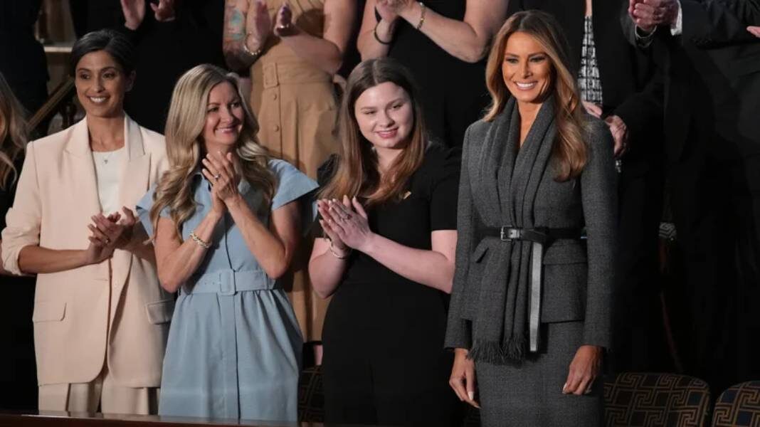 В 2025 году Мелания снова надела скучный серый юбочный костюм