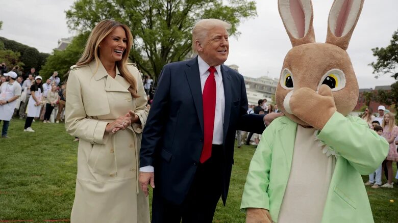 Пасха ассоциируется у нас с целой гаммой пастельных тонов: от нежно-розового до лавандового и нарциссово-жёлтого. Мелания Трамп обошла эти более праздничные гаммы, отдав предпочтение бежевому на ежегодном мероприятии White House Egg Roll 2025 года. Даже Дональд Трамп был в ярких цветах, сочетая синий костюм с вишнево-красным галстуком. Мелания выглядела скучновато рядом с ним в своём тренче от Mackage с поясом и пуговицами. Было бы неплохо увидеть её в чём-то более праздничном и игривом.
