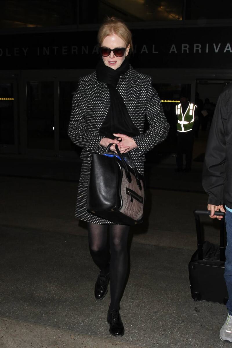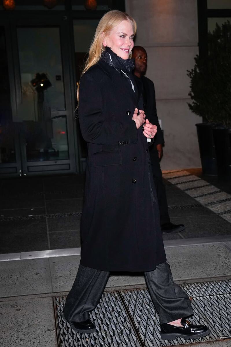 Классическое черное пальто длиной до колена также помогает Николь Кидман создавать простые, удобные и оригинальные сочетания.