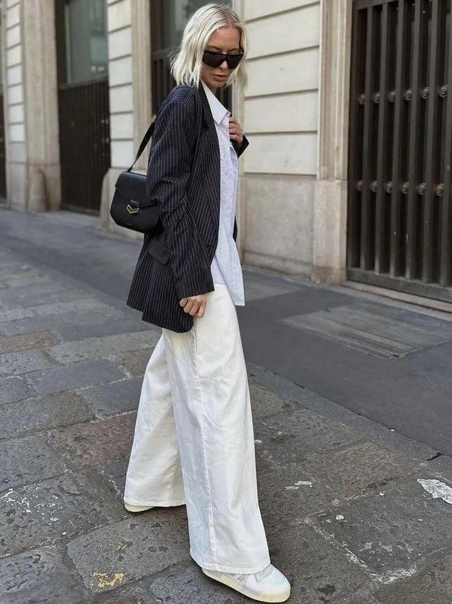- Это могут быть брюки с широкими штанинами.