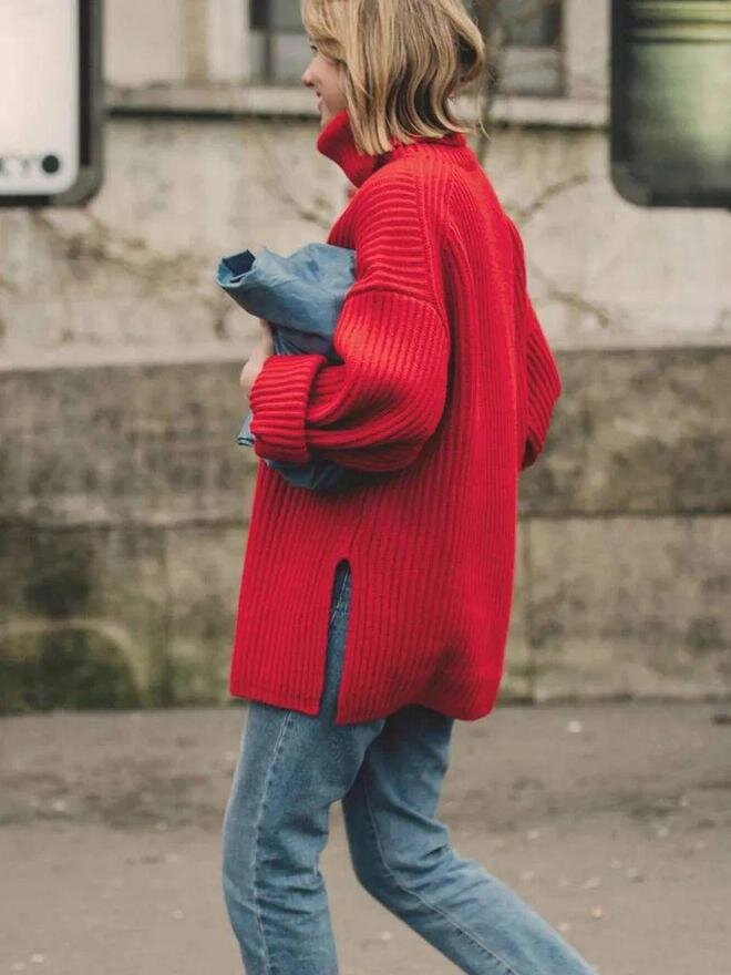 Вязаные свитера немного длиннее.